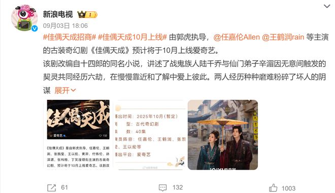 《绝配》原本定于9月在爱奇艺上映,但由于该剧的特殊场景仍在优化,因此并未如期上映。好在,据悉,这两天该剧下一阶段已经全面优化,并于10月份在爱奇艺独播。任嘉伦的粉丝要的是运气。 《绝配》、《三千鸦》、《年无双》都属于十郎小说系列,故事中的人物也有联系。比如首次让赵露思和郑业成大放异彩的《三千鸦》,有着“珠联璧合”的相同世界观。而“年无双”和“天作之合”几乎是同一支球队。三部剧纷纷合作竞逐,就连后两部剧的导演郭虎也做出了剧集链接。曾饰演傅九云的郑业成、《年无双》的刘雪怡客串出演。目前,《天作之合》在爱奇艺和微博的预约量已超过200万,具备未播先火的潜力。当然,《绝配》之所以有好的数据,并不是因为客串演员。更重要的是,不少粉丝期待任嘉伦的古装剧。毕竟他上半年的奇幻题材《无涯渡》在豆瓣就达到了7.5的高分。要知道,这是一个木偶剧的古老曲目,整体分数不高。任嘉伦的古装剧中,只有代表作《锦衣之下》和最折腾的《周生如故》可以与之抗衡。而这一次,《完美情侣》走上了玄幻剧的轨道。我想郭虎也想复制“无记穿越”的成功,所以爱奇艺提前预定了播出时间后,也在另一个阶段优化了特效。她希望凭借任嘉伦的人气,再赢一次安琪的转折2025年下半年木偶剧赛道。《天作之合》是一部老牌女视频网络小说。其实故事情节并不新鲜,但剧中的男主角陆千桥,一个天生带有“五缺”诅咒的战鬼,人物设定非常好。陆千桥是战族与人族的混血儿。他生来就带着“五暗”的诅咒(目无色、味难辨、伤痛、冷血渴、失眠)。虽然他是万年一遇的顶尖战力,但五种感官全部丧失却是极其痛苦的。所以,解除诅咒,转世为人,才是他的主要目标。预告片中,吕千桥要变皮、变肉、变骨、变血、变心,才能成为人,每一个“程序”都需要经过一番拼搏、“粉身碎骨”才能完成。说实话,看了这么多古代木偶戏后,他个人独一无二。其他奇幻童话的男主角都是在努力更上一层楼,而陆千桥却在努力做一个“凡人”,而且他的人物设计非常新颖。任嘉伦在这部剧中有着很多不同的造型。其中一身黑衣的是“斗鬼族少主”,一身浅色的则是贪官“陆槐”。在转职过程中,他将斗鬼族的凶猛气息与凡人的毁灭性结合在一起。国超对古偶剧的了解非常全面。 《天生一对》男主角的服装和妆容都非常独特。还有任嘉伦想要的一个古代木偶的镜头,就是和主角一起走,背着手,撑着伞。这是任嘉伦在《完美婚姻》中最喜欢的场景,此时的《完美婚姻》中也使用了这一场景。但“天作之合”的选择女主角确实不完美。王鹤润被认为是“有名”的兄弟。根本无法和他曾经合作过的李沁、白鹿、谭松韵、迪力拉萨等知名明星相比。估计任嘉伦从2022年到2024年都没有拍爆剧。这段时间是一段复杂的时间,他和前经纪公司欢瑞世纪的合约到期了,所以在接受了这样一本书之后,我有一种不为人知的预感,女主会成为一个障碍。另外,《天作之合》的编剧赵老师在“无忧无虑”的结尾给了我们一记耳光。尽管他答应这出戏应该结束,但我仍然记得。当你再写这个故事时,你不应该让链条滑落!